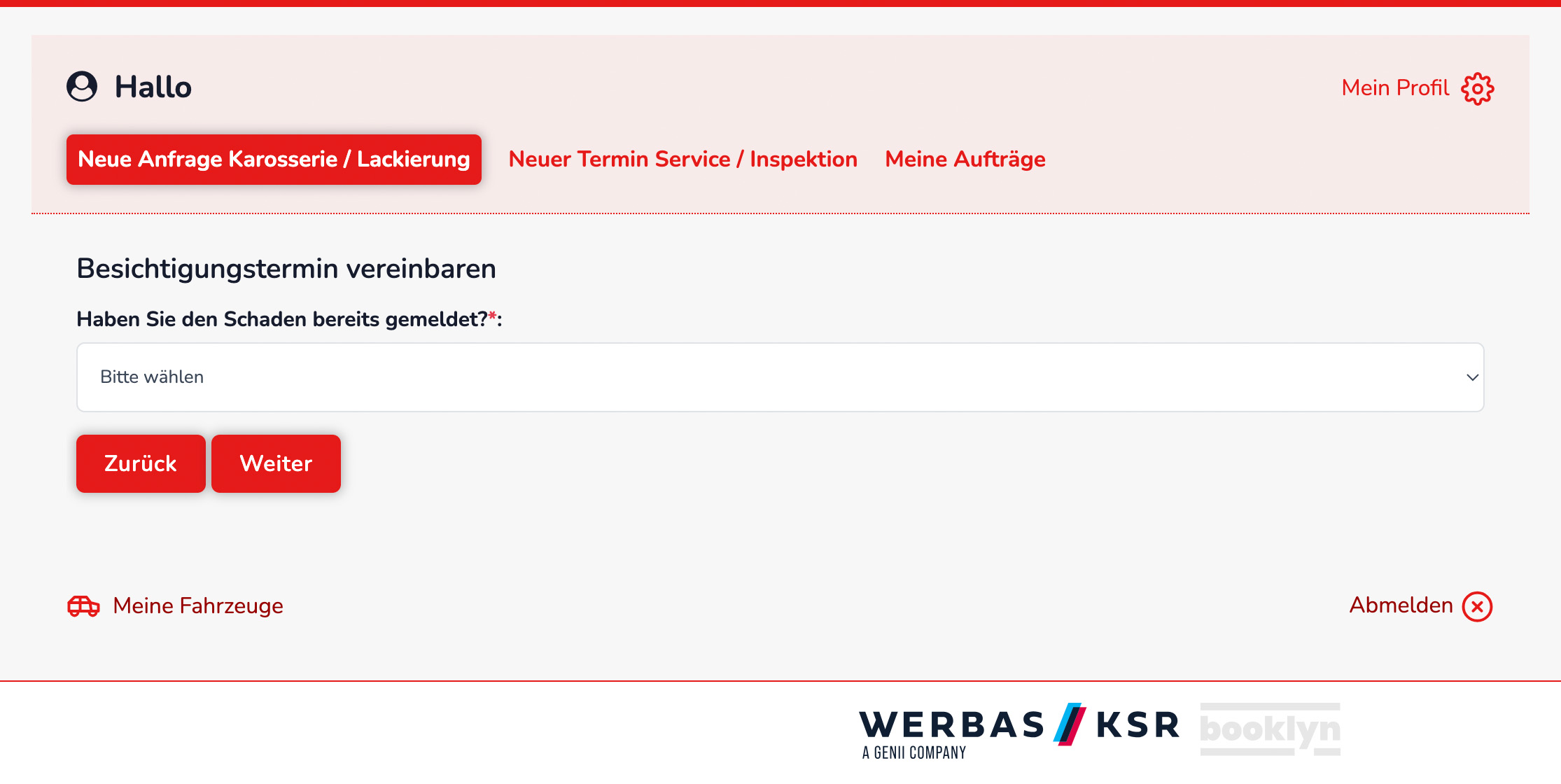 Im ersten Schritt haben Sie die Möglichkeit, einen neuen Schadensfall zu melden. Falls Sie von uns einen Einladungslink erhalten haben, starten Sie bitte direkt mit Ihrem Kennzeichen. Für eine leichtere Abwicklung und Nachverfolgung der Schadenabwicklung erstellen Sie bitte ein Kundenkonto. Um unverbindliche Schadenmeldungen zu übermitteln, melden Sie sich bitte an oder stellen ein neues Benutzerkonto.
